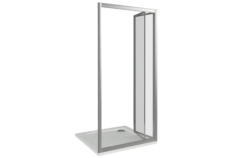 Душевая дверь Bas Infinity обладает размером 100х185 см. Конструкция состоит из двух складных секций. Устанавливается в облицованный кафелем угол или нишу ванной комнаты на поддон или непосредственно на пол со встроенным душевым каналом или трапом