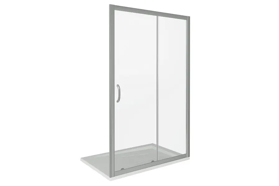 Душевая дверь Bas Infinity обладает размером 140х185 см. Конструкция состоит из двух секций: одной неподвижной и одной раздвижной. Устанавливается в облицованный кафелем угол или нишу ванной комнаты на поддон или непосредственно на пол со встроенным душевым каналом или трапом