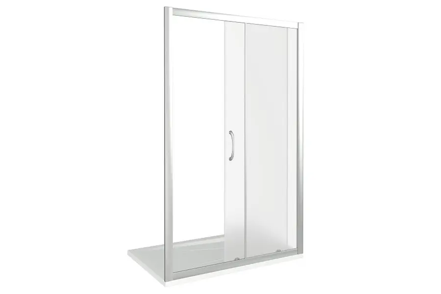 Душевая дверь Bas Latte обладает размером 140х185 см. Конструкция состоит из двух секций: одной неподвижной и одной раздвижной. Устанавливается в облицованный кафелем угол или нишу ванной комнаты на поддон или непосредственно на пол со встроенным душевым каналом или трапом
