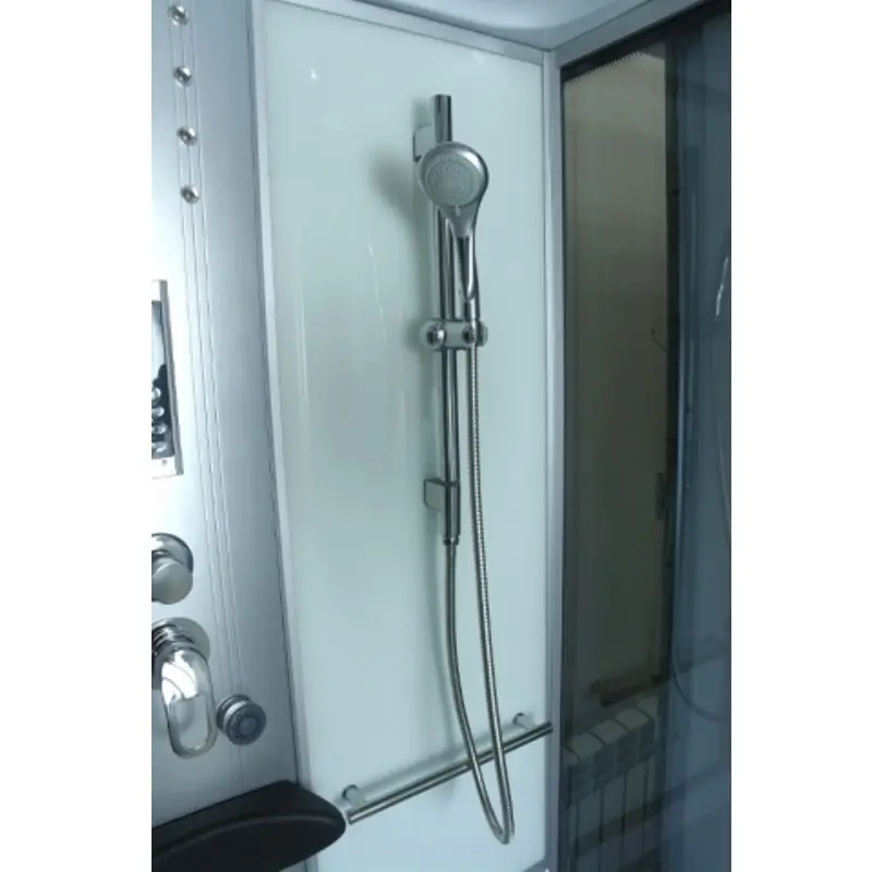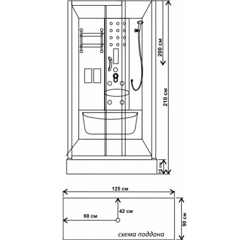 Душевая кабина Водный мир левая имеет размер 125х90 см. Форма — прямоугольная , цвет хром, исполнение полотна двери тонированное. Механизм открывания раздвижной.