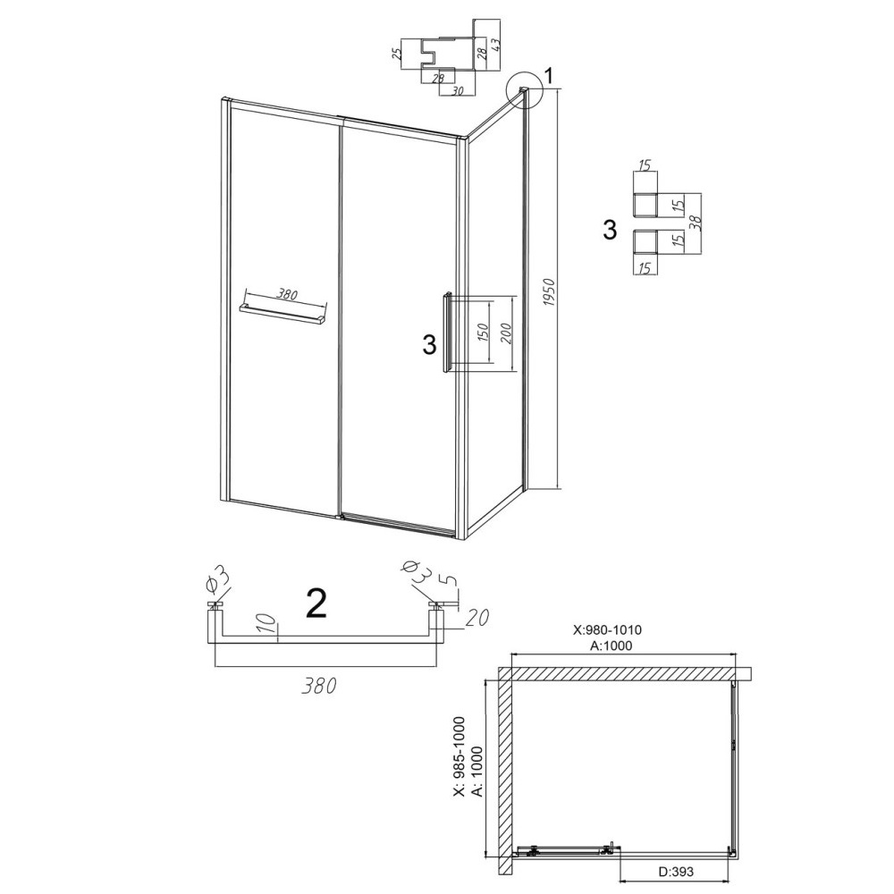 Душевой уголок Grossman Style имеет размер 100х100х195 см. Прямоугольная форма, цвет профиля — хром, исполнение полотна двери — прозрачное. Конструкция состоит из 3 секций. Раздвижная механизм открывания. Устанавливается в облицованный кафелем угол ванной комнаты на поддон.