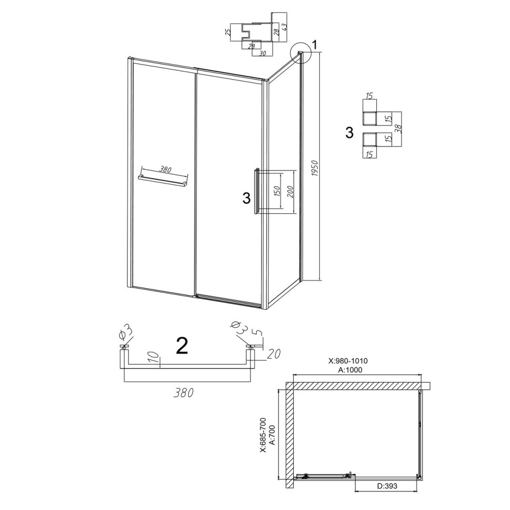 Душевой уголок Grossman Style имеет размер 100х70х195 см. Прямоугольная форма, цвет профиля — хром, исполнение полотна двери — прозрачное. Конструкция состоит из 3 секций. Раздвижная механизм открывания. Устанавливается в облицованный кафелем угол ванной комнаты на поддон.