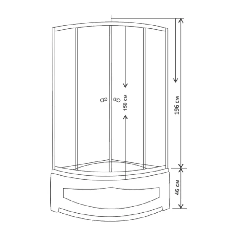 Душевой уголок Водный мир обладает размером 80х80х196 см. Конструкция состоит из четырех секций: двух неподвижных и двух раздвижных. Устанавливается в облицованный кафелем угол ванной комнаты на поддон или непосредственно на пол со встроенным душевым каналом или трапом.