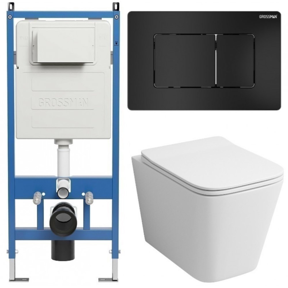 Инсталляция Grossman с унитазом GR-4441S и с клавишей смыва Classic Черный матовый 97.4441S.04.21M