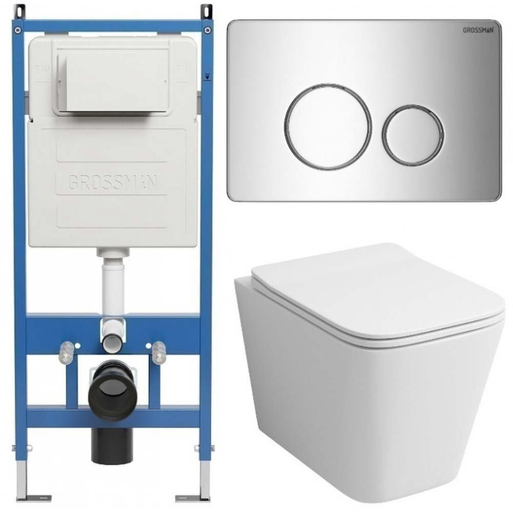 Комплектация: Инсталляция Grossman + Унитаз подвесной Grossman GR-4441S + Крышка-сиденье Grossman + Комплект креплений + Звукоизолирующая прокладка + Клавиша смыва Grossman 700.K31.05.10M.10M.