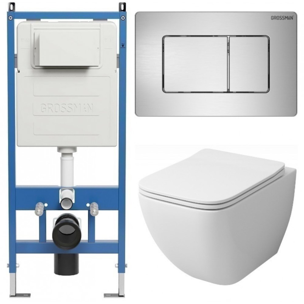 Комплектация: Инсталляция Grossman + Унитаз подвесной Grossman GR-4447S + Крышка-сиденье Grossman + Комплект креплений + Звукоизолирующая прокладка + Клавиша смыва Grossman 700.K31.04.12M.12M.