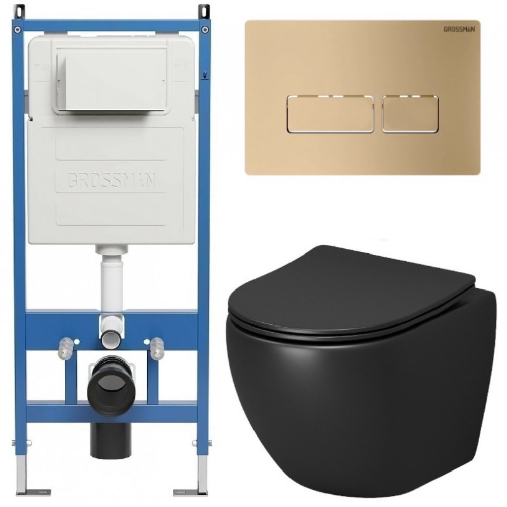 Комплектация: Инсталляция Grossman + Унитаз подвесной Grossman GR-4455BMS + Крышка-сиденье Grossman + Комплект креплений + Звукоизолирующая прокладка + Клавиша смыва Grossman 700.K31.03.310.310.