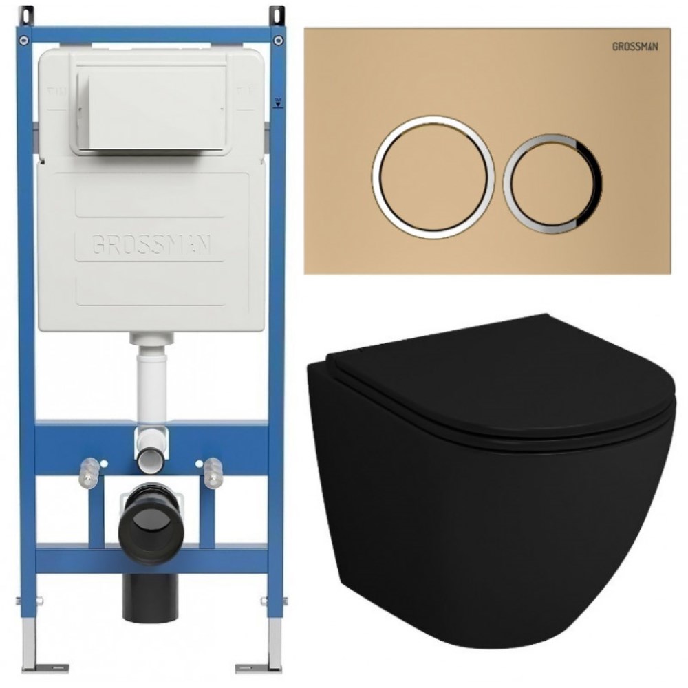 Инсталляция Grossman с унитазом GR-4455BMSQ и с клавишей смыва Galaxy Золото матовый 97.4455BMSQ.01.310