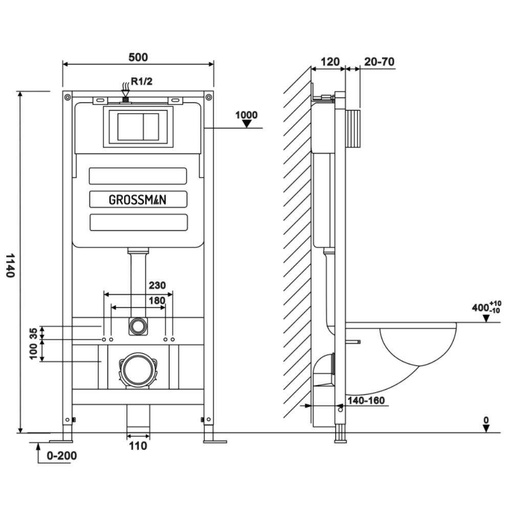 Комплектация: Инсталляция Grossman + Унитаз подвесной Grossman GR-4455BMSQ + Крышка-сиденье Grossman + Комплект креплений + Звукоизолирующая прокладка + Клавиша смыва Grossman 700.K31.01.310.310.