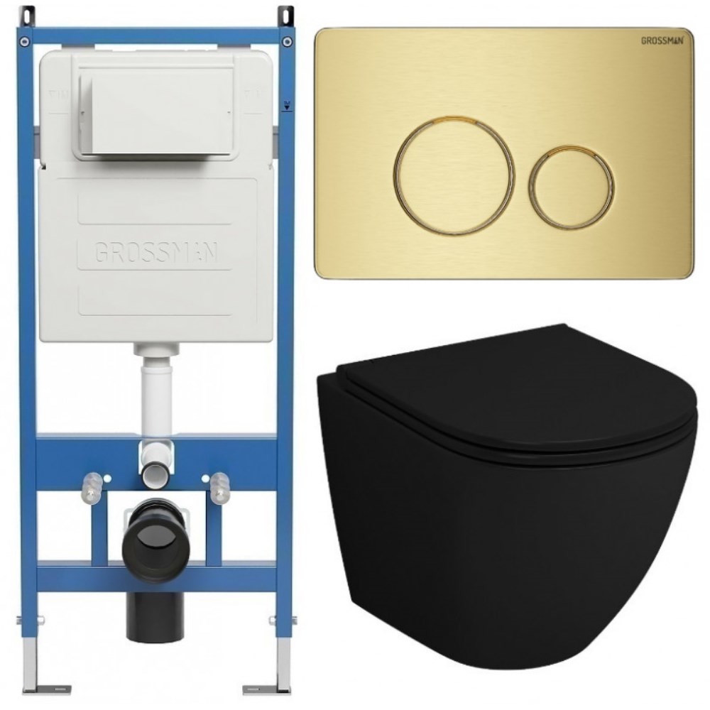 Комплектация: Инсталляция Grossman + Унитаз подвесной Grossman GR-4455BMSQ + Крышка-сиденье Grossman + Комплект креплений + Звукоизолирующая прокладка + Клавиша смыва Grossman 700.K31.05.32M.32M.