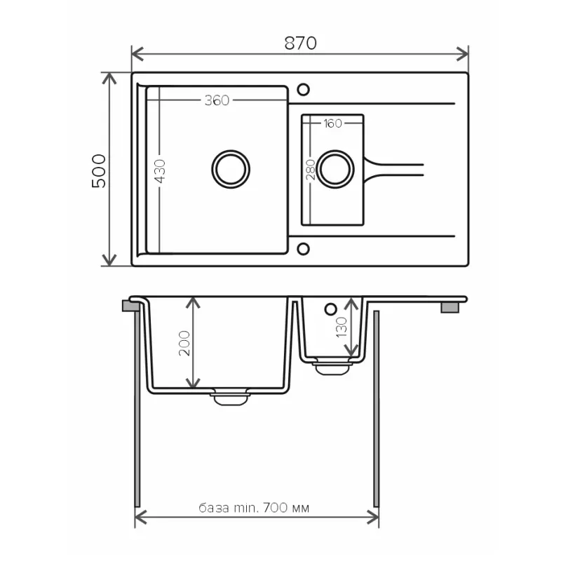 Мойка кухонная Polygran Brig имеет размеры 87х50 см., ширина чаши: 36 см. Прямоугольная форма. Цена указана за мойку со сливом-переливом.