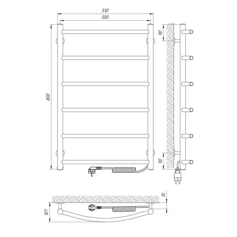 Полотенцесушитель электрический Laris Классик с высотой 80 см., используется для обогрева и сушки помещения. Нижнее подключение. Изготовлен из нержавеющей стали.