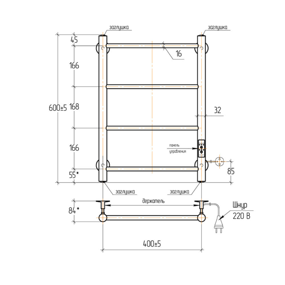 Полотенцесушитель электрический Тера Классика с высотой 60 см., используется для обогрева и сушки помещения. Нижнее подключение. Изготовлен из нержавеющей стали.