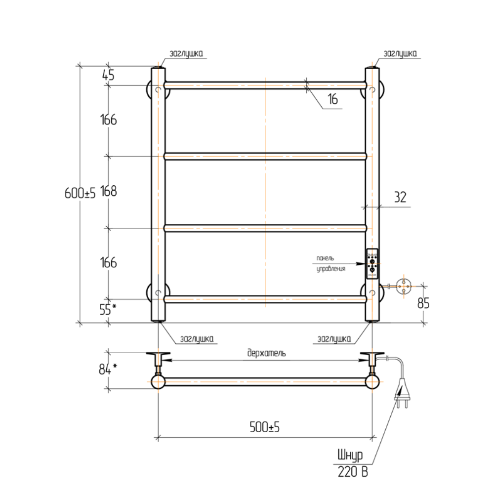 Полотенцесушитель электрический Тера Классика с высотой 60 см., используется для обогрева и сушки помещения. Нижнее подключение. Изготовлен из нержавеющей стали.