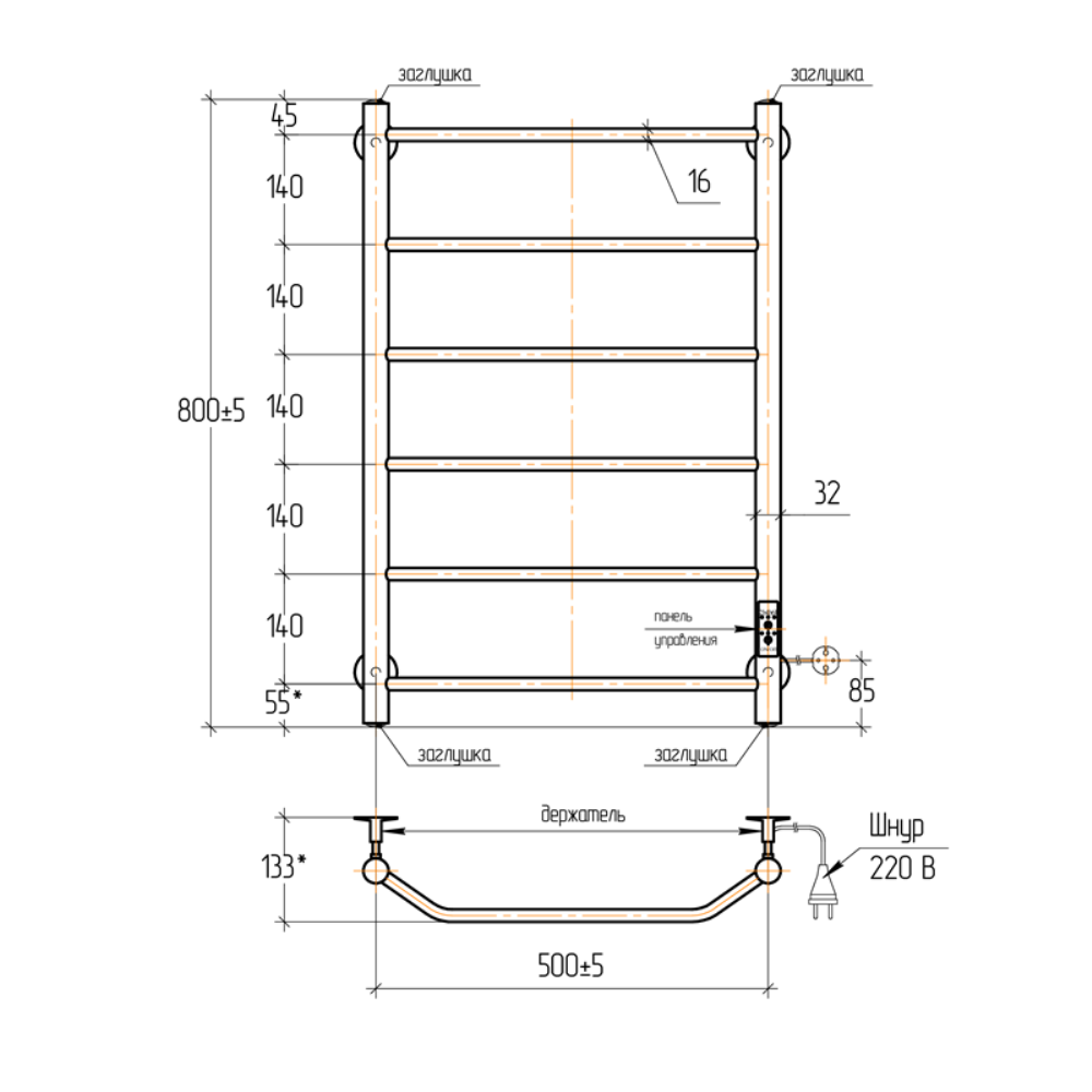 Полотенцесушитель электрический Тера Виктория 50х80 диммер Черный матовый ПСК-11-03д.ч