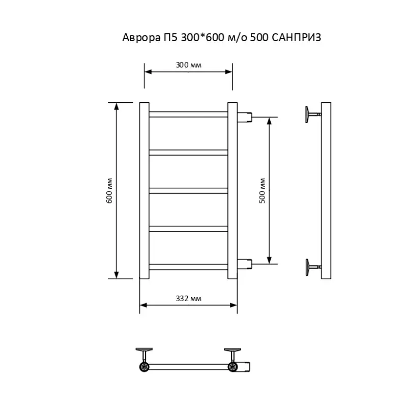 Полотенцесушитель водяной Санприз Аврора П5 300*600 Хром глянцевый 11009