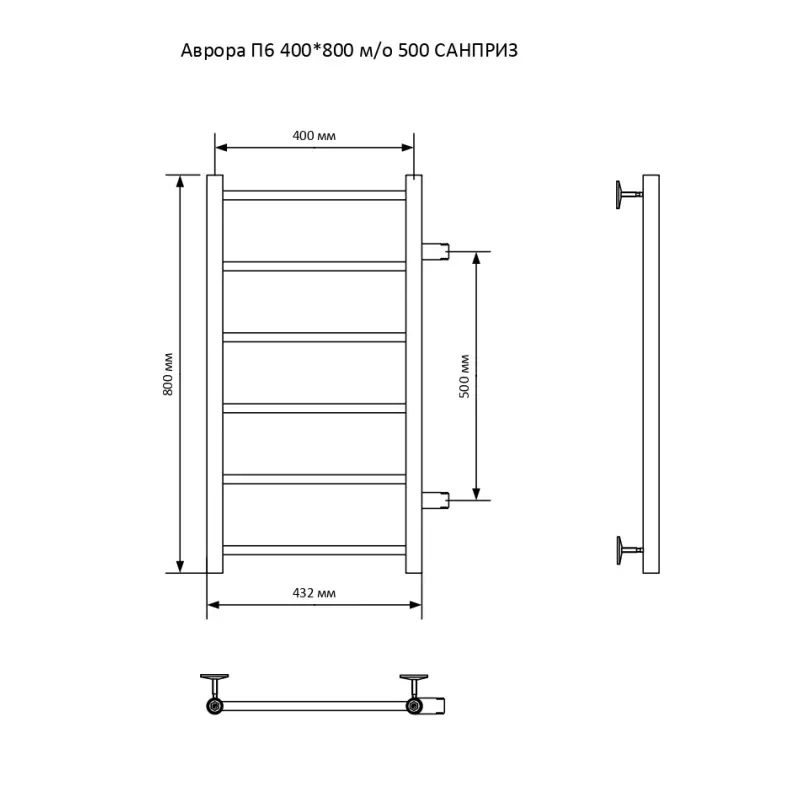 Полотенцесушитель водяной Санприз Аврора П6 400*800 Хром глянцевый 11012