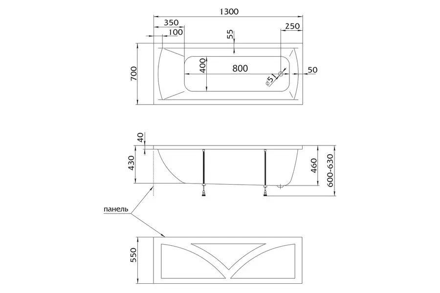 Данный товар: Ванна акриловая 1MarKa Modern 130х70 Белый 01мод1370