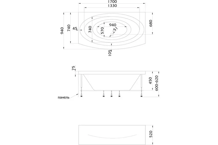 Акриловая ванна 1MarKa из коллекции Nega имеет размер 170х95. Форма — прямоугольная. Страна изготовитель — Россия. Дополнительно комплектуется каркасом, смесителем, сточным комплектом, передней и/или боковой панелью.