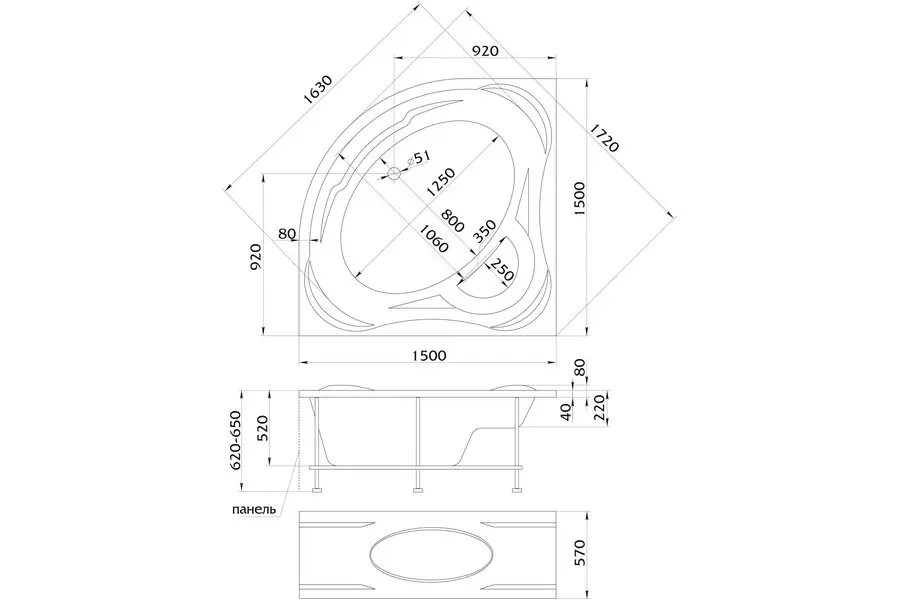 Ванна акриловая 1MarKa Palermo 150х150 Белый 01па1515