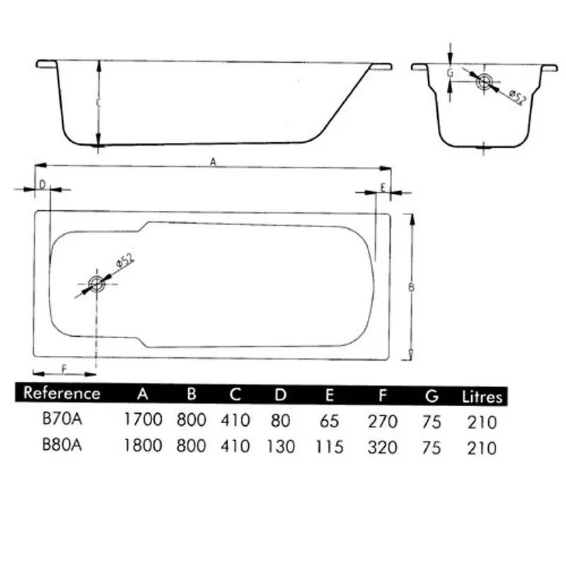 Ванна стальная BLB Atlantica 170х80 Белый B70A б